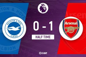 体育资讯3月5日讯 英超第29轮,布莱顿坐镇主场美国运通社区球场迎战阿森纳。上半场,拉亚失误加布里埃尔关键解围,萨卡先拔头筹。半场战罢,布莱顿0-1阿森纳。