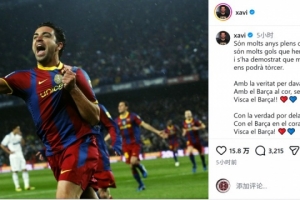 哈维写道:“岁月如梭,征程漫漫,无数进球我们曾呐喊,证明无人能撼动我们的信念。”(巴萨队歌部分)