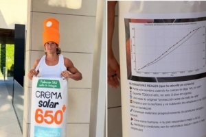 马卡:略伦特装扮成一管防晒霜,宣传让人们拒绝使用防晒霜