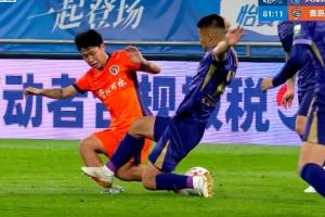 体育资讯04月12日讯 津门虎vs海牛第82分钟,黄嘉辉对金永浩犯规,裁判一开始没有出牌。