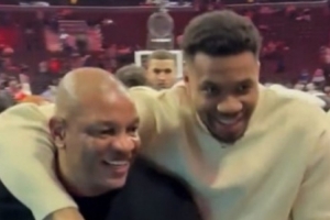 有美媒晒出雄鹿的赛季收官战后字母哥和里弗斯一起离场的画面。两人勾肩搭背、说说笑笑。