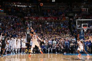 体育资讯2月28日讯 10年前的今天,库里面对雷霆狂轰12记三分,最后时刻超远三分绝杀。